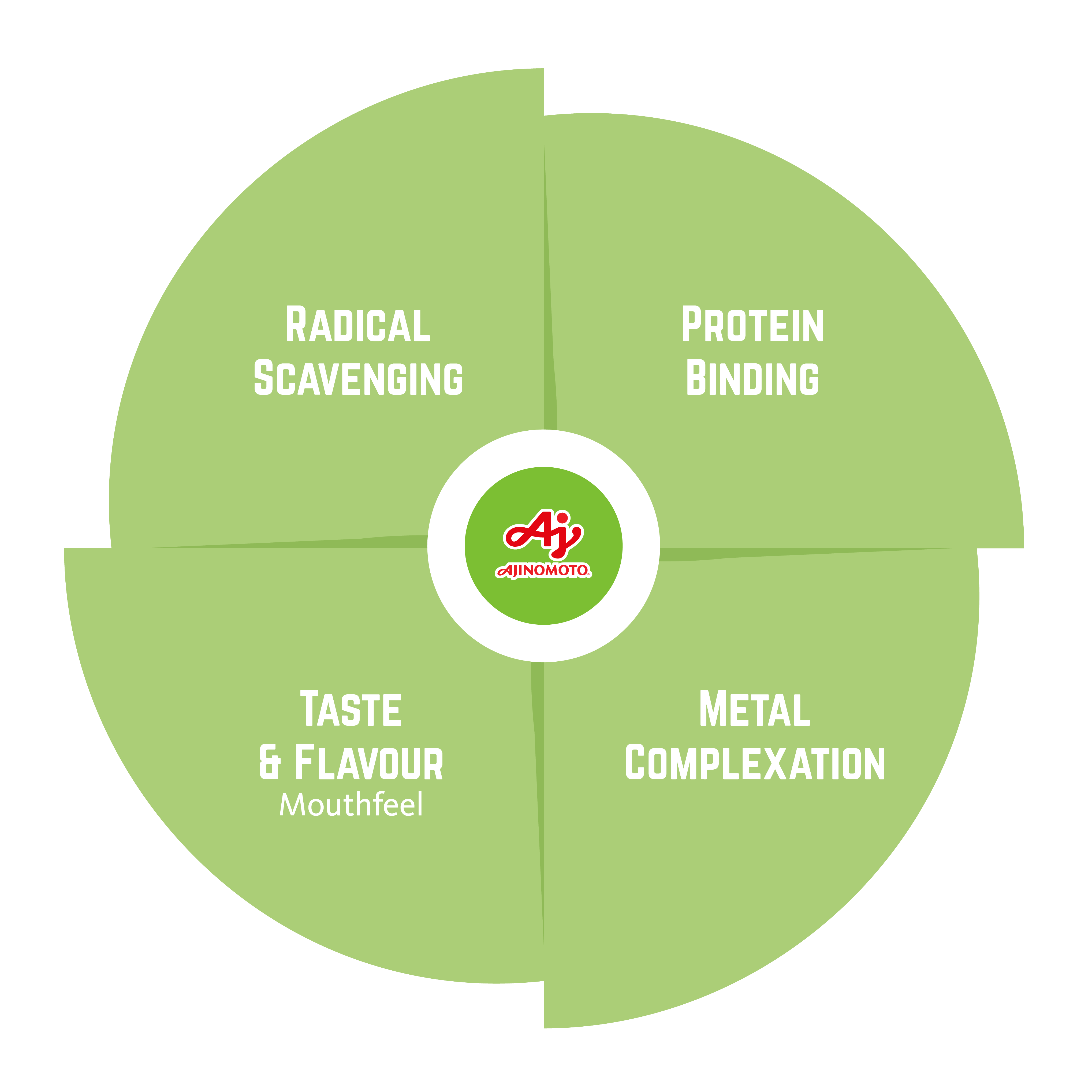Dit diagram geeft de vier belangrijkste eigenschappen van tanninezuren weer voor dranktoepassingen.